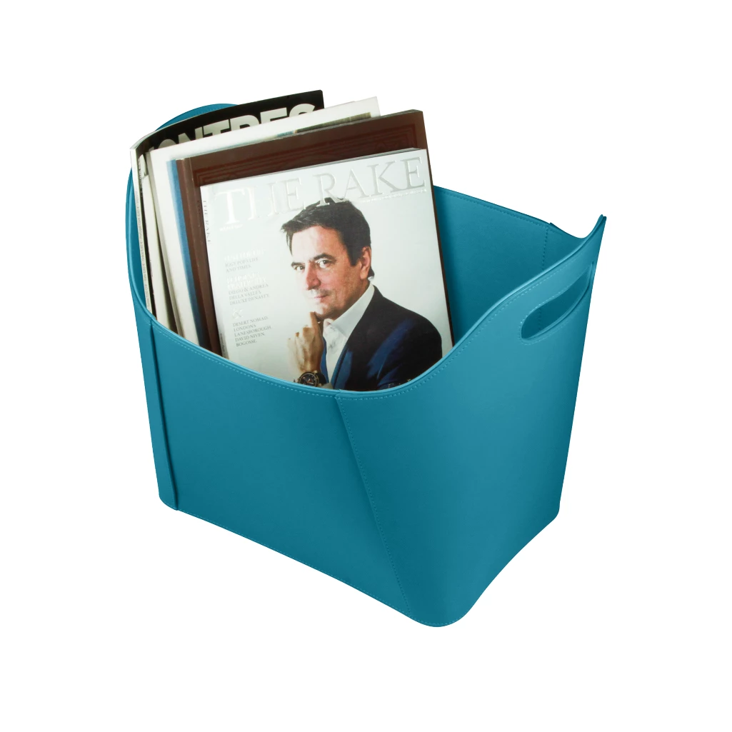 Tämä nahkainen lehtien säilytyskori on täydellinen lisäys kotisi tai toimistosi sisustukseen. Aidosta nahasta valmistettu kori kestää arjen kolhuja ja kulumista menettämättä tippaakaan eleganssiaan. Tämän säilytyskorin virheettömät viimeistelyt tekevät siitä todellisen katseenvangitsijan.