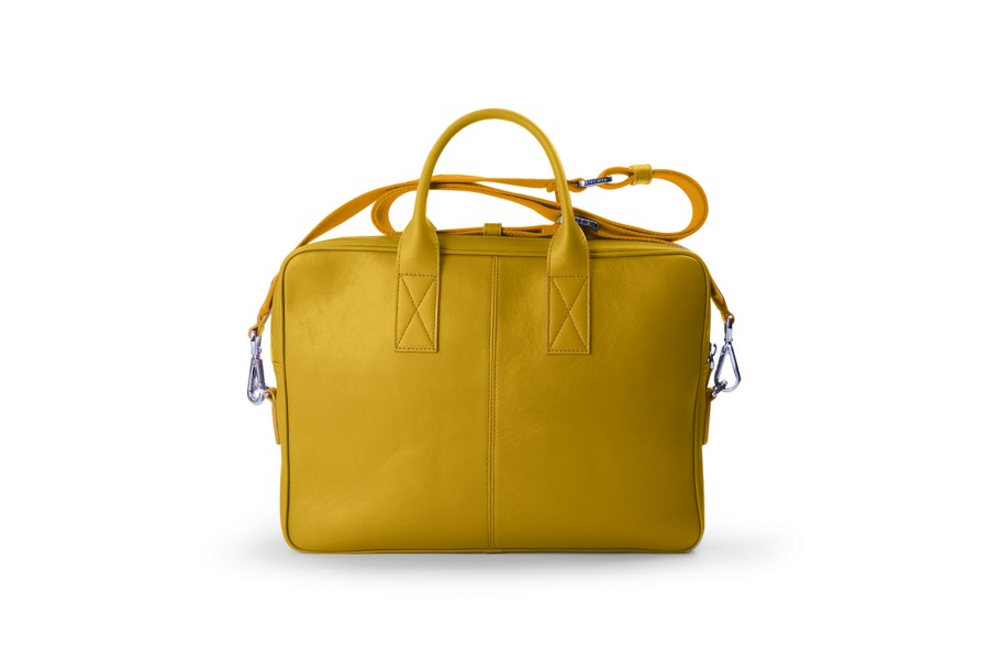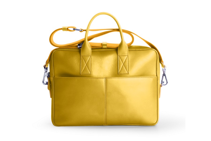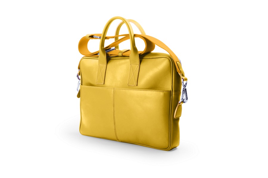 15-tuumainen tietokonelaukku - Auringonkeltainen - Sileä nahka