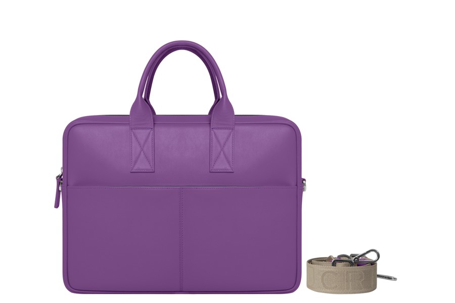 Kantolaukku 13-tuumaiselle kannettavalle tietokoneelle - Laventeli - Sileä nahka