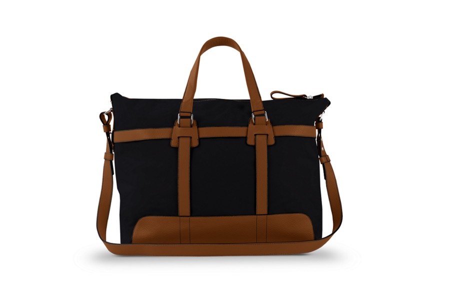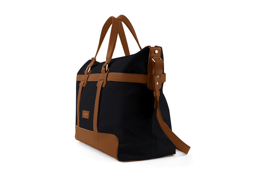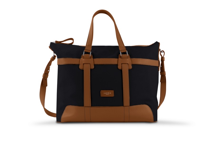 Esittelyssä trendikäs nahkaviimeistelty kannettava kangaslaukku, joka toimii oivasti viikonloppumatkoilla. Lucrinin Designer-malliston luomus on valmistettu kiinnittäen huomiota yksityiskohtiin ja täydelliseen viimeistelyyn, tehden siitä ainutlaatuisen ylellisen ja tyylikkään käsimatkatavaralaukun.