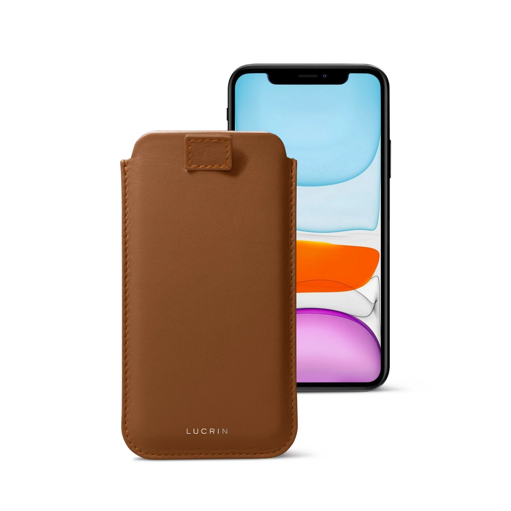 Klassinen iPhone 11 -suoja vetohihnalla Kellanruskea  - Sileä nahka