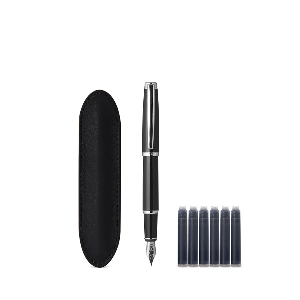 Toimitetaan 6 täyttöpatruunan kanssa Ref: RST0011 Toimitetaan ilmaisen mustan kotelon kanssa. Kynän materiaali: Messinki