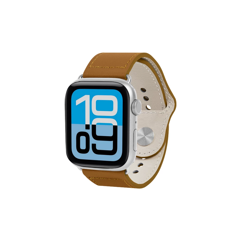 Täydellinen päivittäinen kumppanisi: nahkainen urheiluranneke Apple Watch Series 11 (46 mm) ja SE 3 (44 mm). Tämä Apple Watch -urheiluranneke valmistetaan ensiluokkaisesta lehmännahasta ja istuu mukavasti ranteeseen, tuntuen pehmeältä. Ruostumatonta terästä oleva solki sietää kulutusta ja lämpöä ruostumatta.